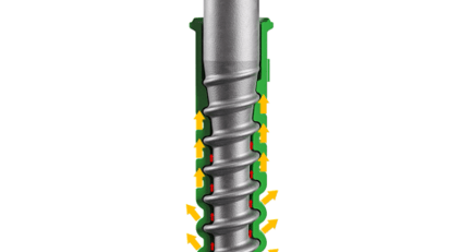 The optimized geometry and robust, water-repellent material of the dowel in the screw-dowel combination reduce the transverse forces in concrete sleepers, thereby protecting the concrete sleeper and track superstructure and sustainably reducing the life cycle costs for the entire infrastructure.