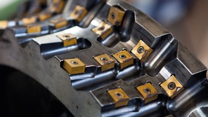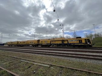Unlike rail grinding, milling is a chip-removal process. Numerous cutting tools are mounted on a rotating milling wheel, which is guided longitudinally along the rail. The design and configuration of the milling tool vary depending on the requested operation and the required rail profile. During the milling process, which is controlled to within a tenth of a millimeter, high removal rates can be achieved per pass; depending on the machine, these range from 0.3 mm (the minimum removal rate due to the technology) to 2.0 mm on the rail surface and a maximum of 2.5 mm per running edge in one pass. This means that the optimum track gauge can be restored after wear-induced changes to the track gauge by means of gauge correction milling. On the other hand, the milling plates are arranged to match the target profile of the rail head, ensuring a continuous transverse profile.