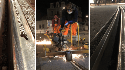 With the Flexis system, Vossloh offers a complete solution for turnout maintenance. Handheld and track-guided, the machines are on track within minutes and cover all processing stages – from initial grinding of new installations to preventive, acoustic, and maintenance grinding, all the way to corrective repair measures. In addition, the Flexis teams can take on special tasks, such as double junctions, rail extensions, level crossings or short track sections with individual faults, such as slip zones, squats, etc., which large machines cannot perform due to their design or whose use is too costly.