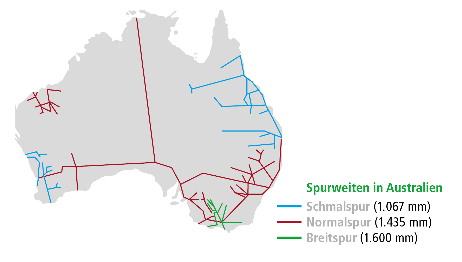Australien ist ein Land der Extreme, was auch für seine Eisenbahninfrastruktur gilt. Als eines der flächenmäßig größten Länder der Welt verfügt Australien über ein Hauptschienennetz von 35.000 km Länge – vergleichbar mit dem gesamten Schienennetz Deutschlands. Aktuelle Daten zeigen, dass der australische Eisenbahnmarkt im Jahr 2024 einen Wert von 8,6 Milliarden US-Dollar erreicht hat. Prognosen zufolge wird er bis 2033 auf 14,8 Milliarden US-Dollar wachsen, was einer jährlichen Wachstumsrate von 5,95 % (2025-2033) entspricht.