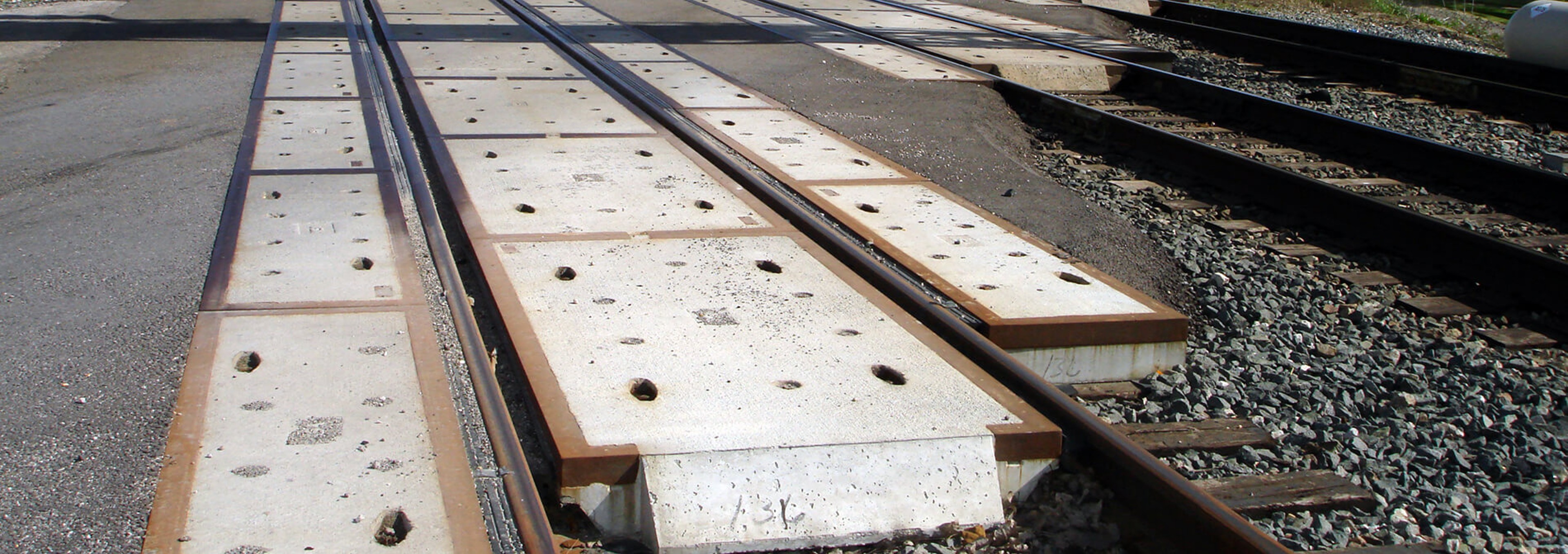 Die Bahnübergangssysteme sind sowohl für Holz- als auch Betonschwellen konzipiert und bestehen aus Beton mit hohem Abflusskoeffizienten in einem Rahmen aus schwerem Stahl. Sie werden mit Gummi-Führungsrille, Unterlagsplatte, Schwellenverschraubung und Deflektoren geliefert. Zwei Komponenten werden bei der Herstellung eingesetzt: Ein hydrophobes, chemisches Additiv reduziert die Wasserdurchlässigkeit und Absorption von Flüssigkeiten, eine Faserverstärkung bietet erhöhte Schlagfestigkeit.