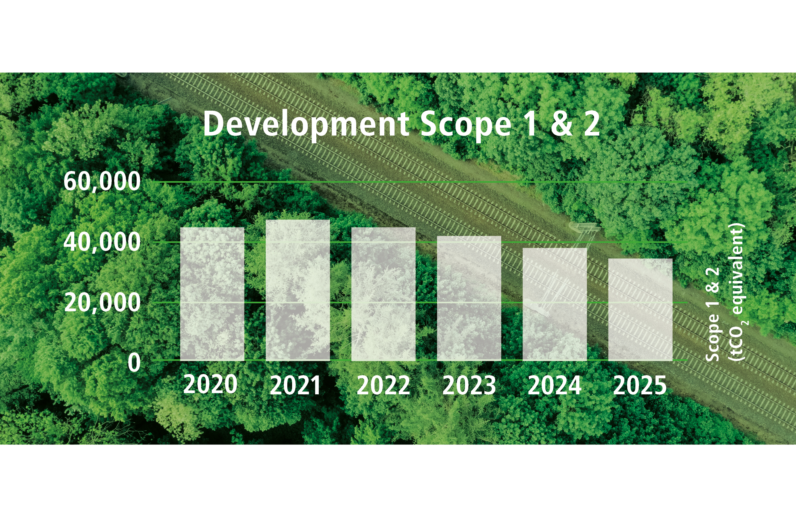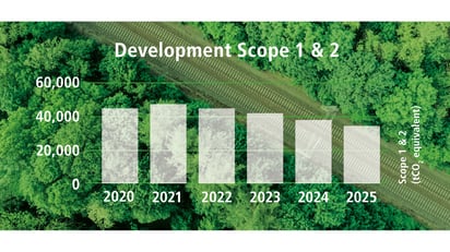 Vossloh mainly uses the Greenhouse Gas Protocol (GHGP) to measure, report and manage emissions, including the setting of targets. In connection with the acquisition of Sateba and its ongoing integration, the potential impact of structural changes on the emissions base is also currently being analyzed. Against this background, it may be necessary to review the underlying base year and adjust it where necessary. The analysis is expected to be completed in 2026. The climate neutrality target for 2030 (Scope 1 and 2) is based on assumptions regarding sales development that are guided by Vossloh's rolling three-year planning and longer-term linear sales growth. To achieve its climate neutrality target, Vossloh has been intensifying its measures to decarbonize the Group since 2021.