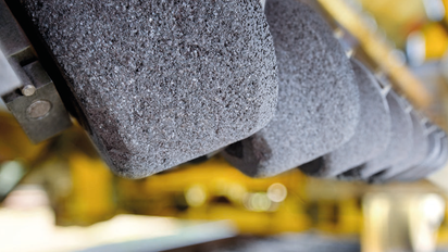 The contact forces from the rolling wheel cause a thin martensitic layer to form on the running surface. This layer, hardened by cold deformation, is approx. 0,1 mm thick and provides fertile ground for rolling contact fatigue damage. Due to high speeds and heavy axle loads, the initially micro-fine surface cracks grow exponentially into head checks and squats, especially on high-speed tracks. The now severe rail defects are spreading into the intact base material and can only be removed through substantial material removal, such as milling.