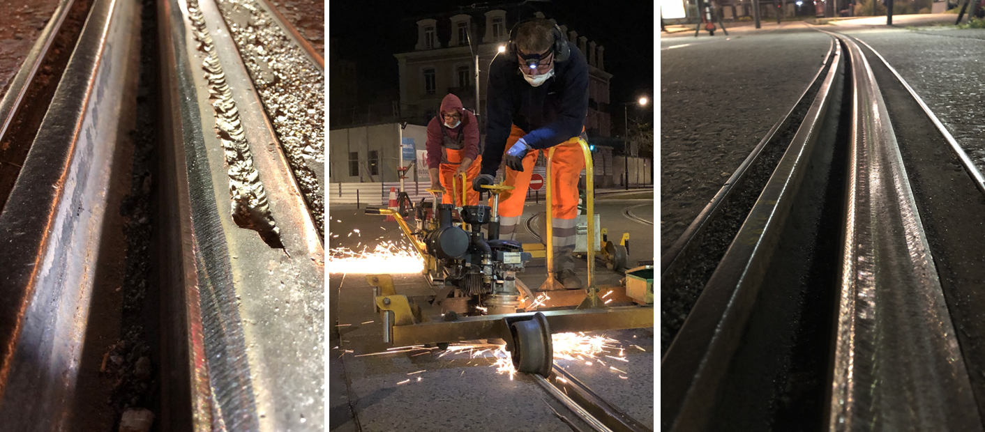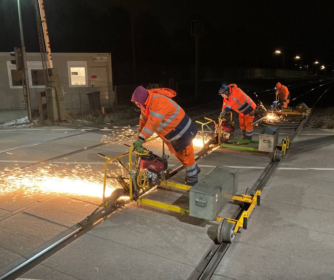 With the Flexis system, Vossloh offers a complete solution for turnout maintenance. Handheld and track-guided, the machines are on track within minutes and cover all processing stages – from initial grinding of new installations to preventive, acoustic, and maintenance grinding, all the way to corrective repair measures. In addition, the Flexis teams can take on special tasks, such as double junctions, rail extensions, level crossings or short track sections with individual faults, such as slip zones, squats, etc., which large machines cannot perform due to their design or whose use is too costly.