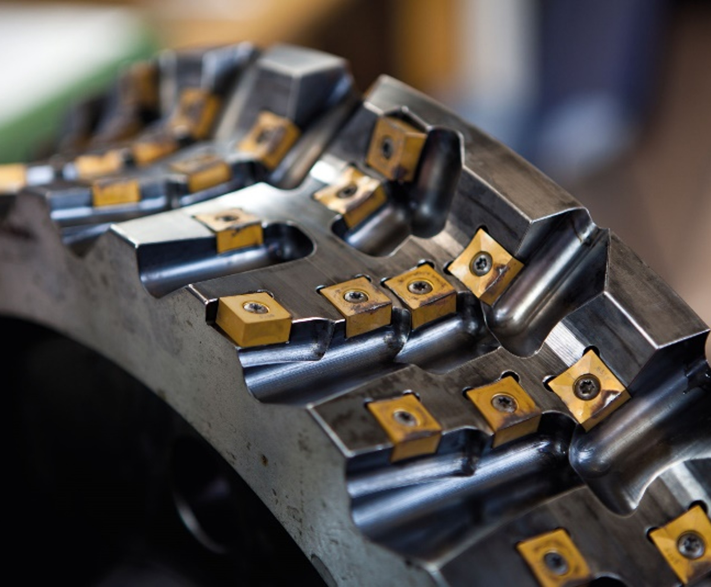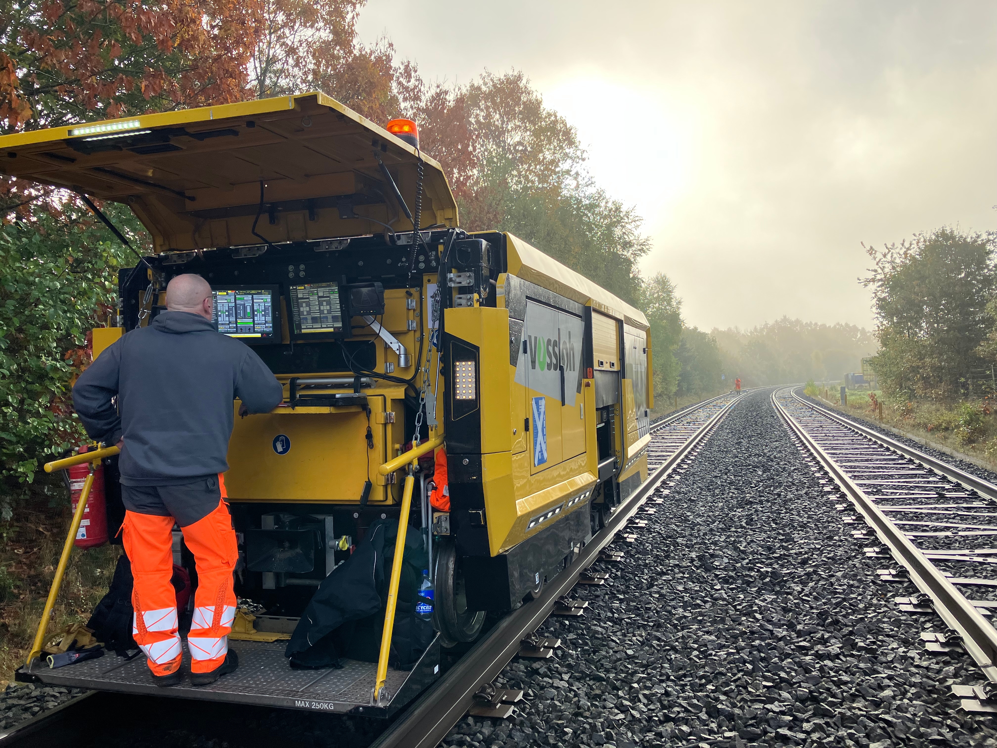 Contrairement au meulage des rails, le fraisage est un procédé d’usinage par enlèvement de copeaux. La roue de fraisage rotative équipée de nombreuses plaquettes de coupe est guidée le long du rail. La conception et les caractéristiques de l’outil de fraisage varient en fonction de l’intervention et du profil requis. Le processus de fraisage, commandé au dixième de millimètre près, permet d’une part d’obtenir un enlèvement élevé de matière par passe : sur la surface du rail, en fonction de la machine, de 0,3 mm (enlèvement minimum lié à la technologie) à 2,0 mm et sur le bord intérieur du rail, 2,5 mm maximum par bord en une seule passe. Après une modification de l’écartement due à l’usure, le fraisage permet de rétablir l’écartement optimal de la voie. D’autre part, la disposition des plaquettes de fraisage, adaptée au profil souhaité du champignon, permet d’obtenir un profil transversal continu.