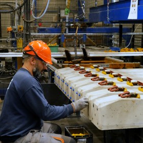 M312 est une traverse précontrainte monobloc à boudins, conçue pour répondre aux exigences d'atténuation des vibrations des voies sur dalles modernes. Cette traverse innovante est disponible avec différents niveaux de performance et constitue une alternative extrêmement rentable à la voie sur dalle flottante (FST).