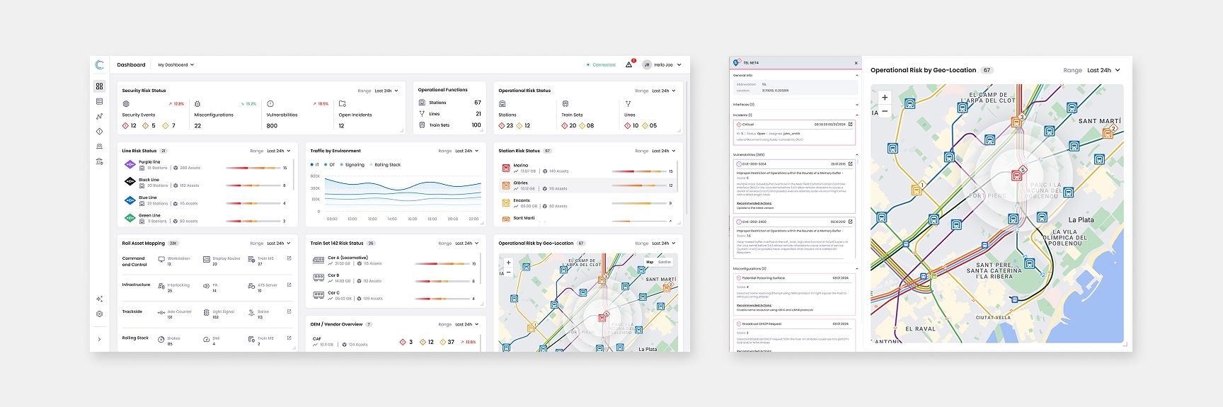 Une visibilité limitée, des configurations incorrectes et des vulnérabilités non corrigées exposent les actifs, tels que les systèmes de signalisation et les systèmes embarqués, à des menaces telles que l'usurpation d'identité, les attaques par déni de service et la manipulation de protocoles, mettant en péril la sécurité et le service. Avec l'augmentation des normes telles que TS50701 et IEC 62443, les opérateurs ont besoin de solutions spécialement conçues offrant des informations contextuelles en temps réel et une défense proactive.