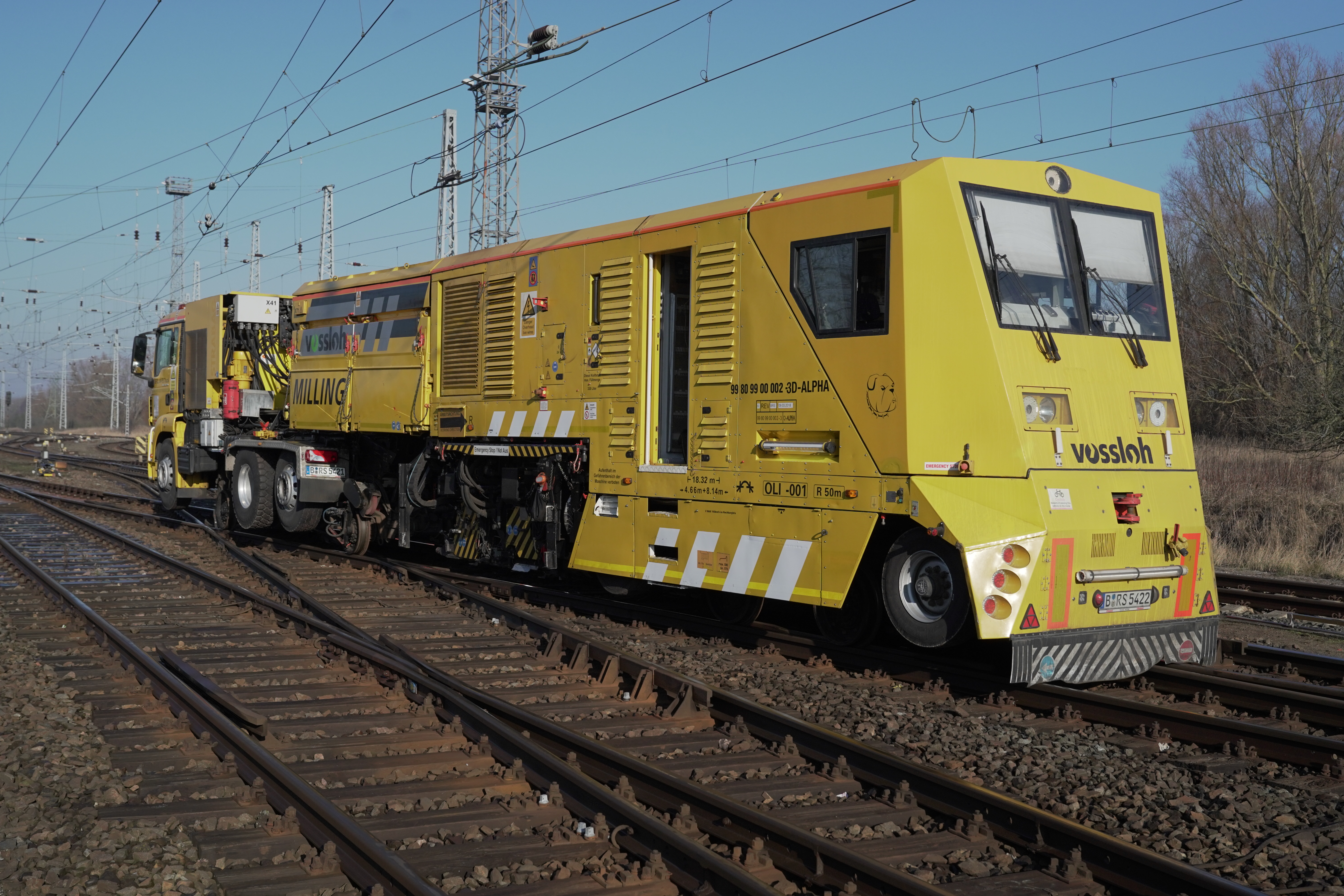 La fraiseuse mobile rail-route complète à merveille le parc de machines de Vossloh. Elle est extrêmement flexible puisqu’elle est adaptée à la circulation sur route. Elle offre ainsi une mobilité maximale, une facilité de mise sur et hors rails, ainsi que des temps de préparation très courts. Outre son écartement de voie réglable (1 000-1 520 mm), elle se distingue par ses particularités techniques en matière de fraisage :