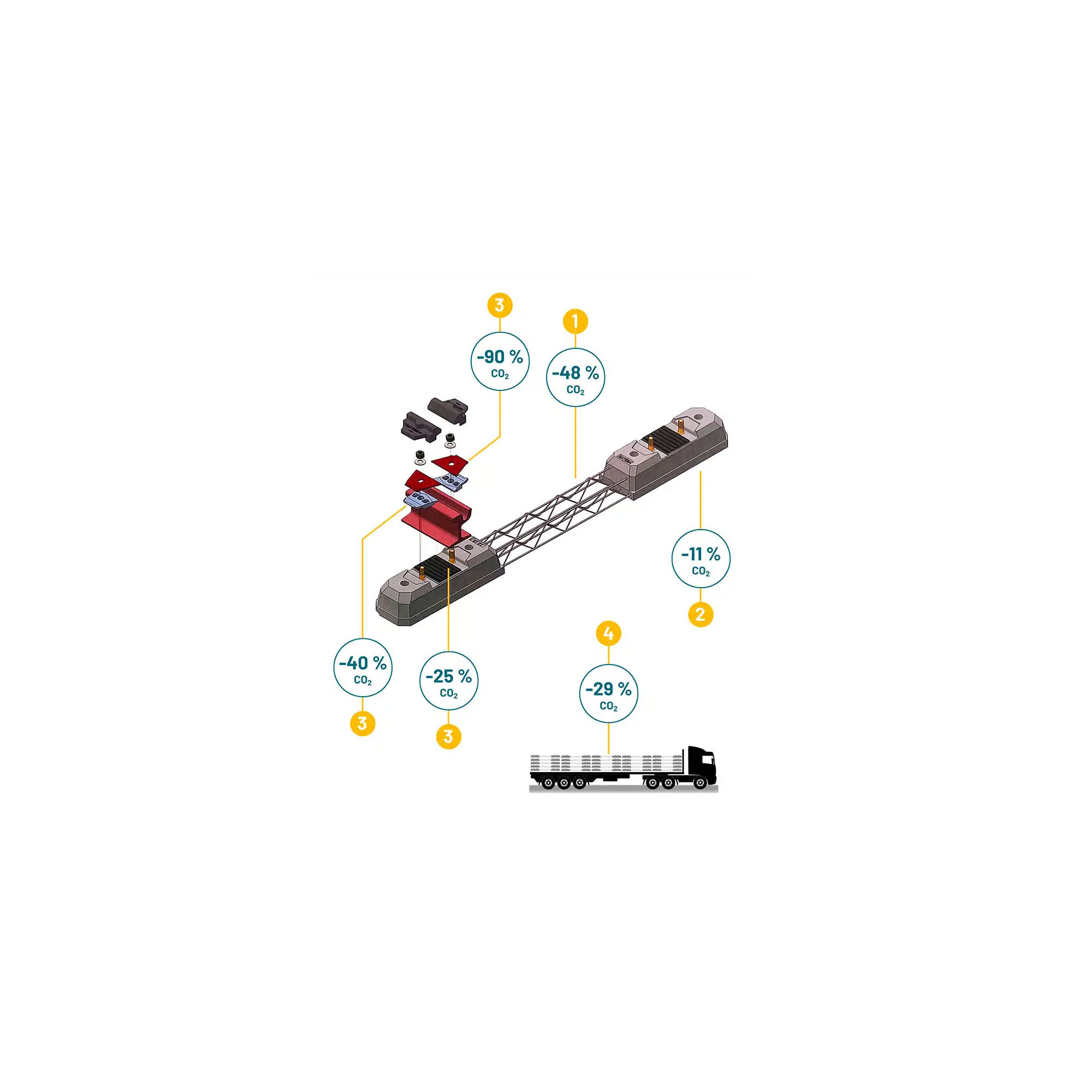La traverse TW120 est une traverse bi-bloc bétonnée à fond plat et peu profonde, utilisée pour la construction de dalles ferroviaires encastrées. Sa forme unique et ses caractéristiques intégrées permettent de réaliser d'importantes économies de temps et d'argent en facilitant une installation rapide, en réduisant le temps de maintenance et en améliorant la qualité de la voie.